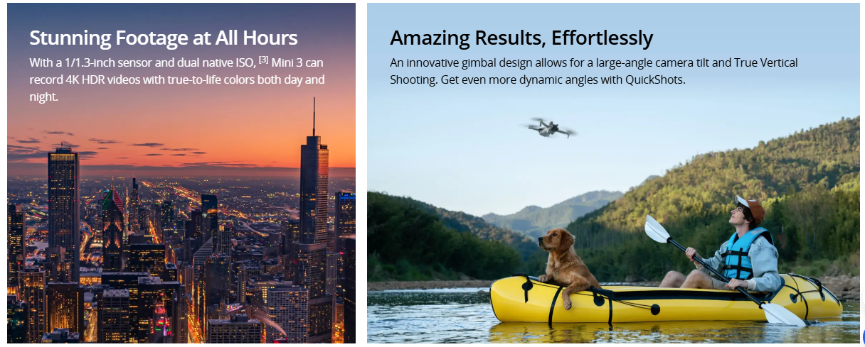 Measured at a constant speed of 21.6 kph in windless conditions. With the Intelligent Flight Battery, the aircraft can fly for up to 38 mins. 51-Min Extended Flight Time, foldable and weighs under 249 g. Go Far With 10km Transmission, Stunning Footage at All Hours